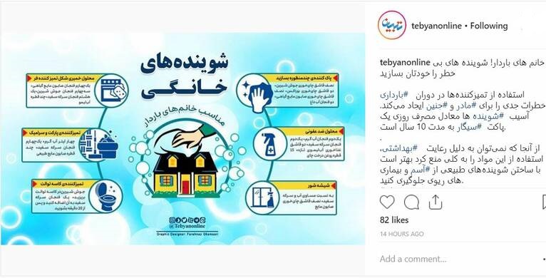 صفحه اینستگرامی تبیان آنلاین با انتشار عکس نوشته ای درباره روش ساخت شوینده‌های بی خطر در منزل نوشت: