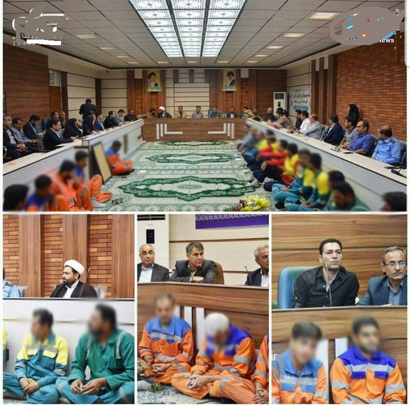 روز گذشته در مراسم تجلیل از شهردار برازجان، پاکبانان را روی زمین و جلوی دیگران نشاندند.