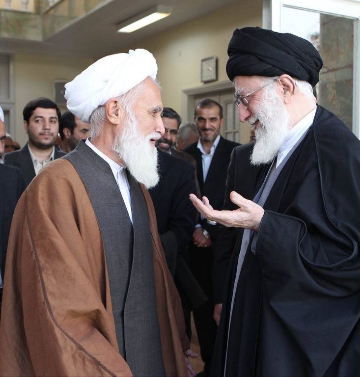 تصویری از عالم متفکر مرحوم حجتالاسلام والمسلمین حائری شیرازی در کنار رهبر انقلاب