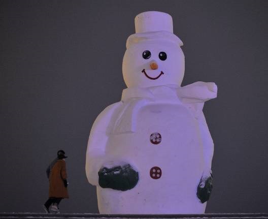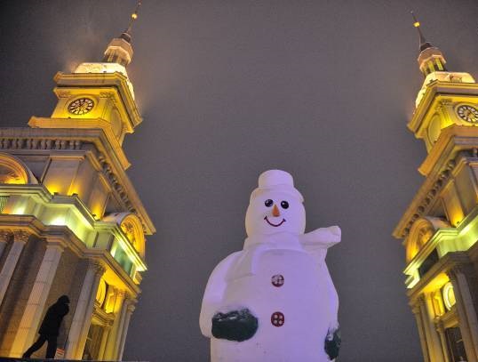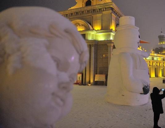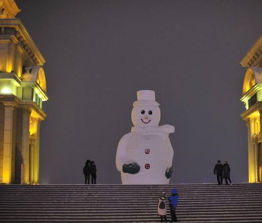ساخت آدم برفی 4متری در حاشیه نمایشگاه هاربین چین.